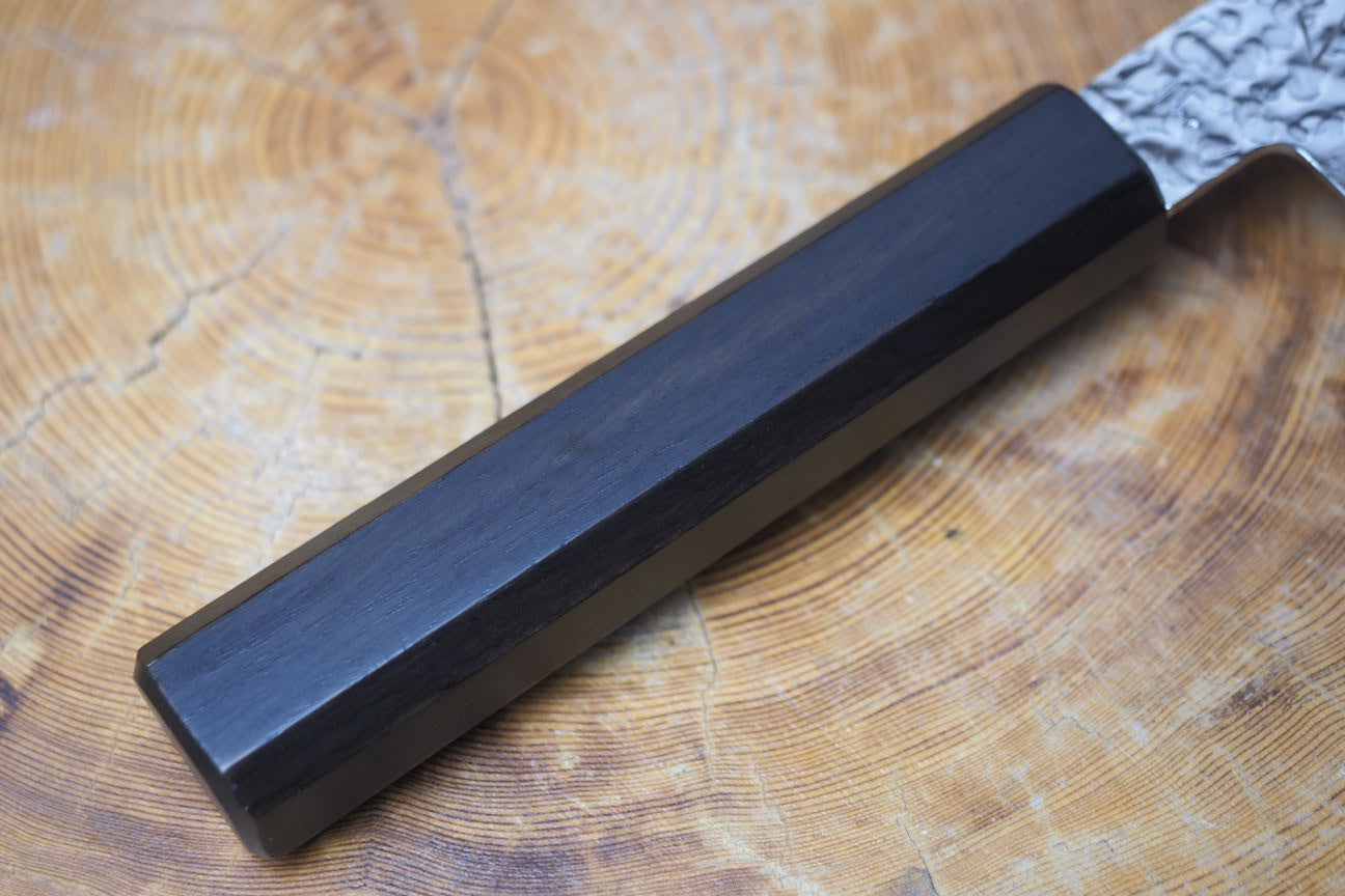 As a knife handle, it is quite lightweight compared to western oak wood, having comparative durability. The black lacquer is applied on top to give elegant feeling.