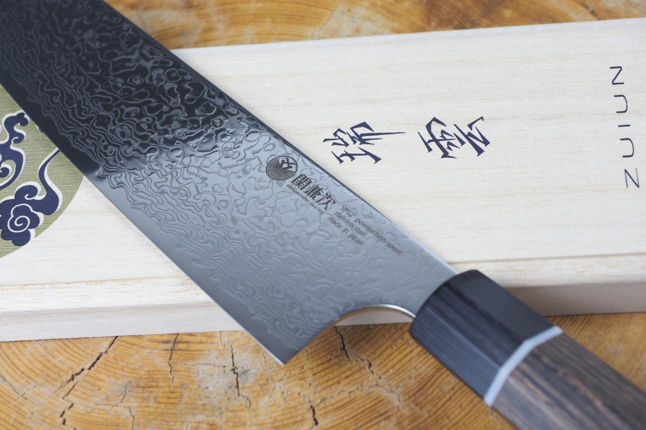 Seki Kanetsugu - Zuiun Santoku SG2 High Speed Powdered Steel Kiritsuke (K-tip) 18cm (custom sheath included)