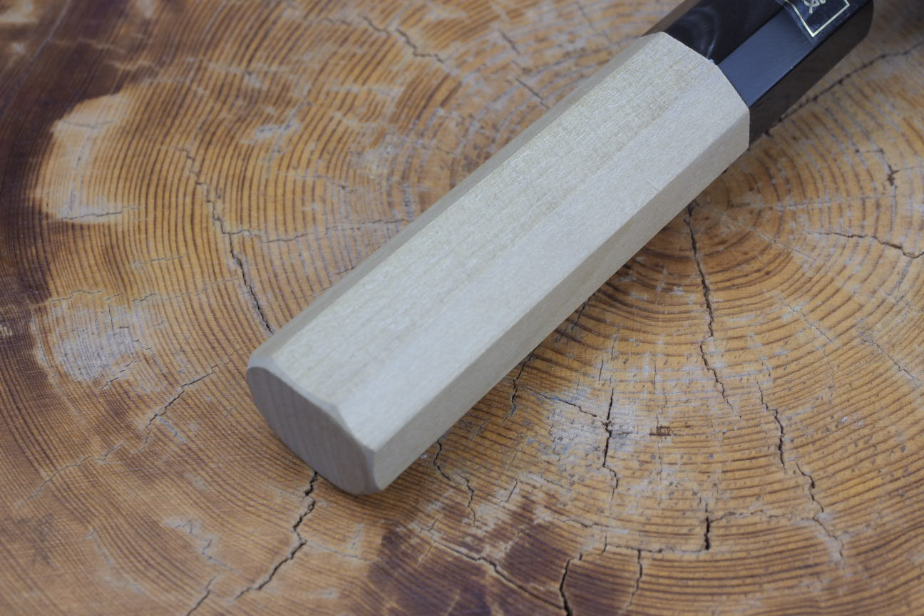 "Blue-2 steel (Aogami #2)", the high-end carbon steel, is used for Montanren series. It is prone to rust without regular maintenance but known as top-class sharpness and durability.