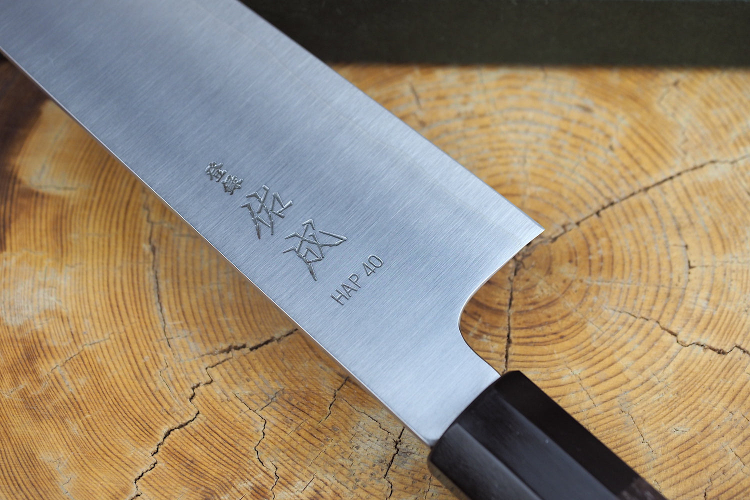 Sukenari's current effort is creating next generation knives using special alloy steel with scrutiny of its origins of forging traditional single-edged knives. This new creation includes super hard ZDP189 and HAP40 semi-stainless material with exceptionally high carbon content.