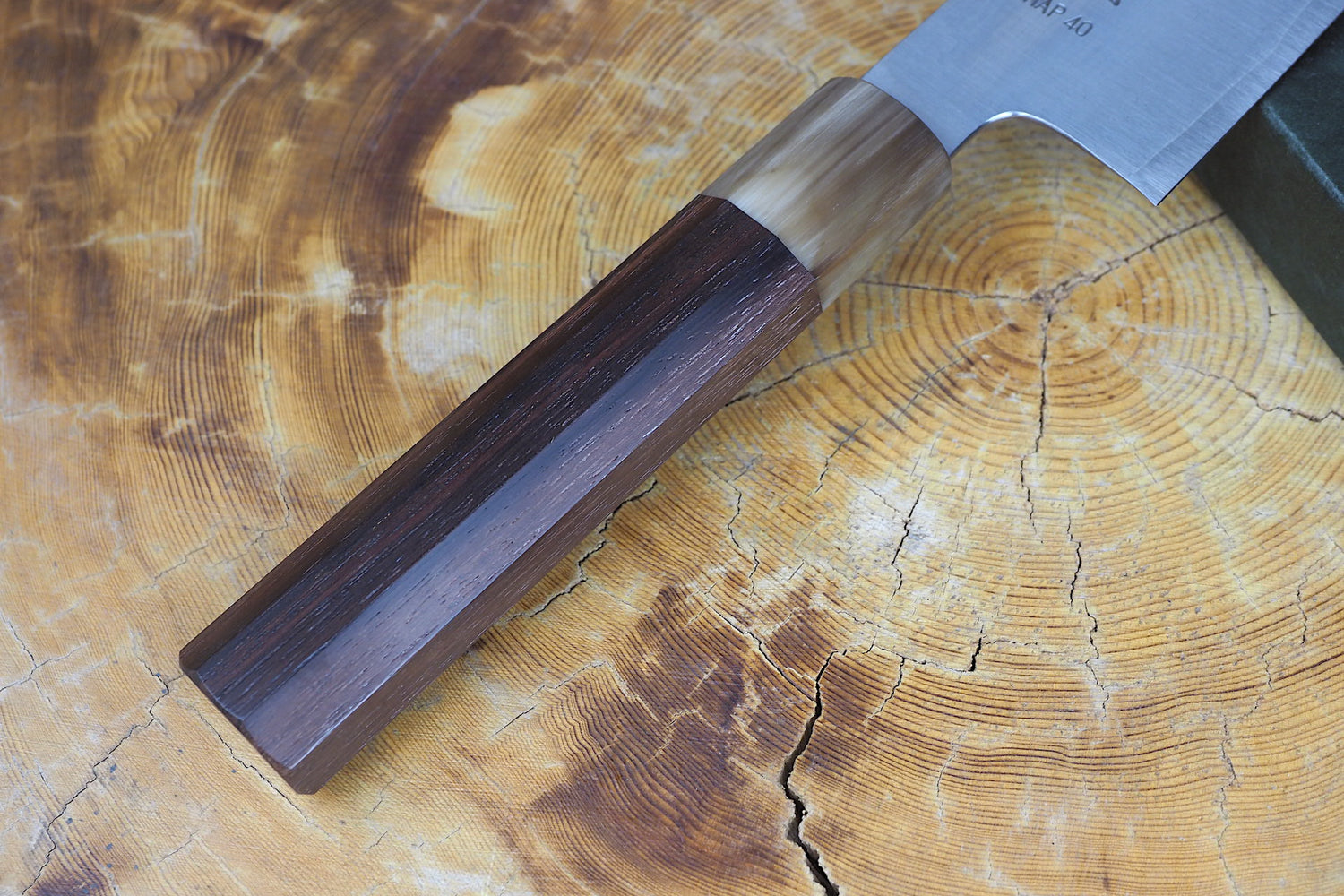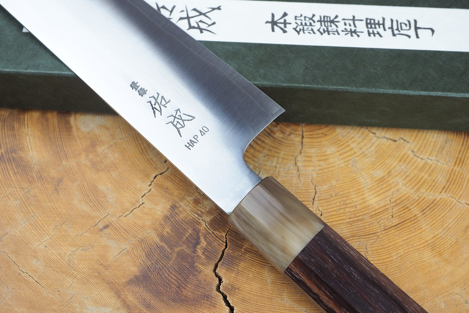 Sukenari HAP40 Powdered High Speed Steel Kiritsuke (K-tip) Gyuto Chef's knife 21cm with Rosewood & Buffalo Horn Handle