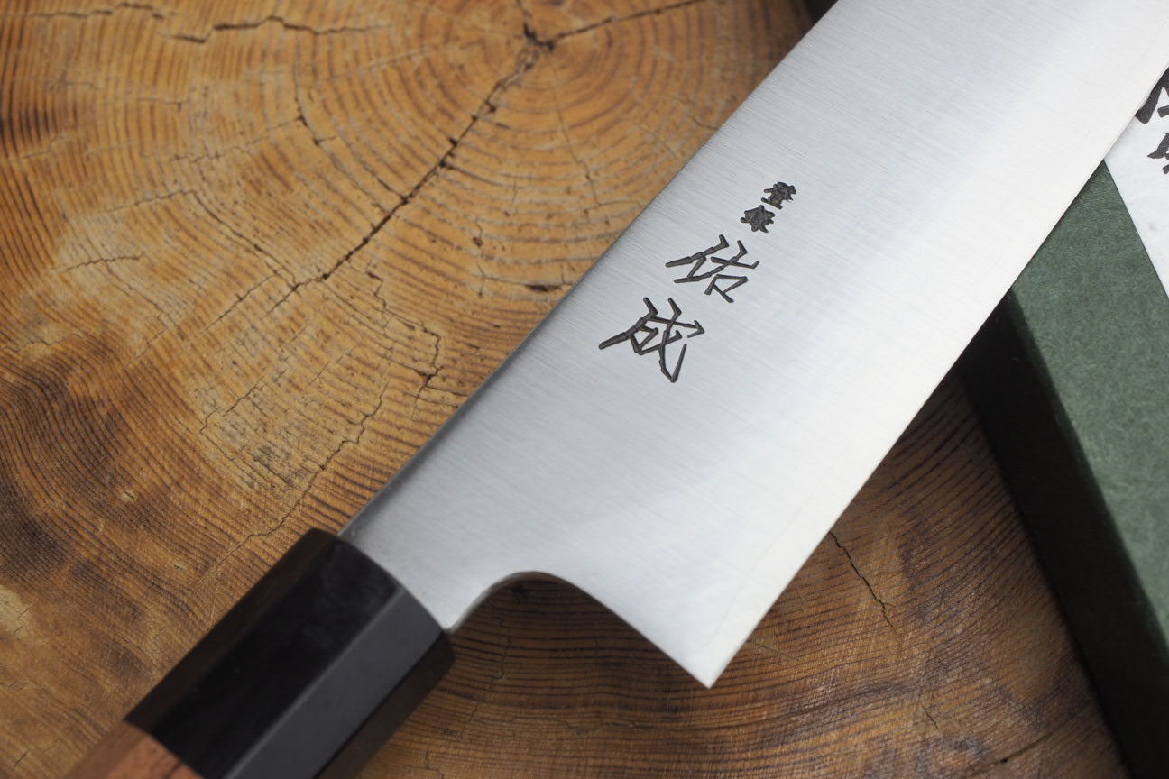 The registered trademark, Sukenari(佑成)consists of two Japanese kanji letters and has a special meaning - To be(the second letter: 成)the righthand of a person(the first letter: 佑)who cooks. Since its foundation in 1933, , they have been practicing the principle of being relied upon by people who cook and devoted themselves to improving its knife-making technology from generation to generation. Mr. Hanaki, the third generation master, utilises the most traditional and prominent Honyaki-forging method on his basis of knife making and creates cutting-edge products ranging from special alloy steel to the latest powdered steel which meet the needs of the time.