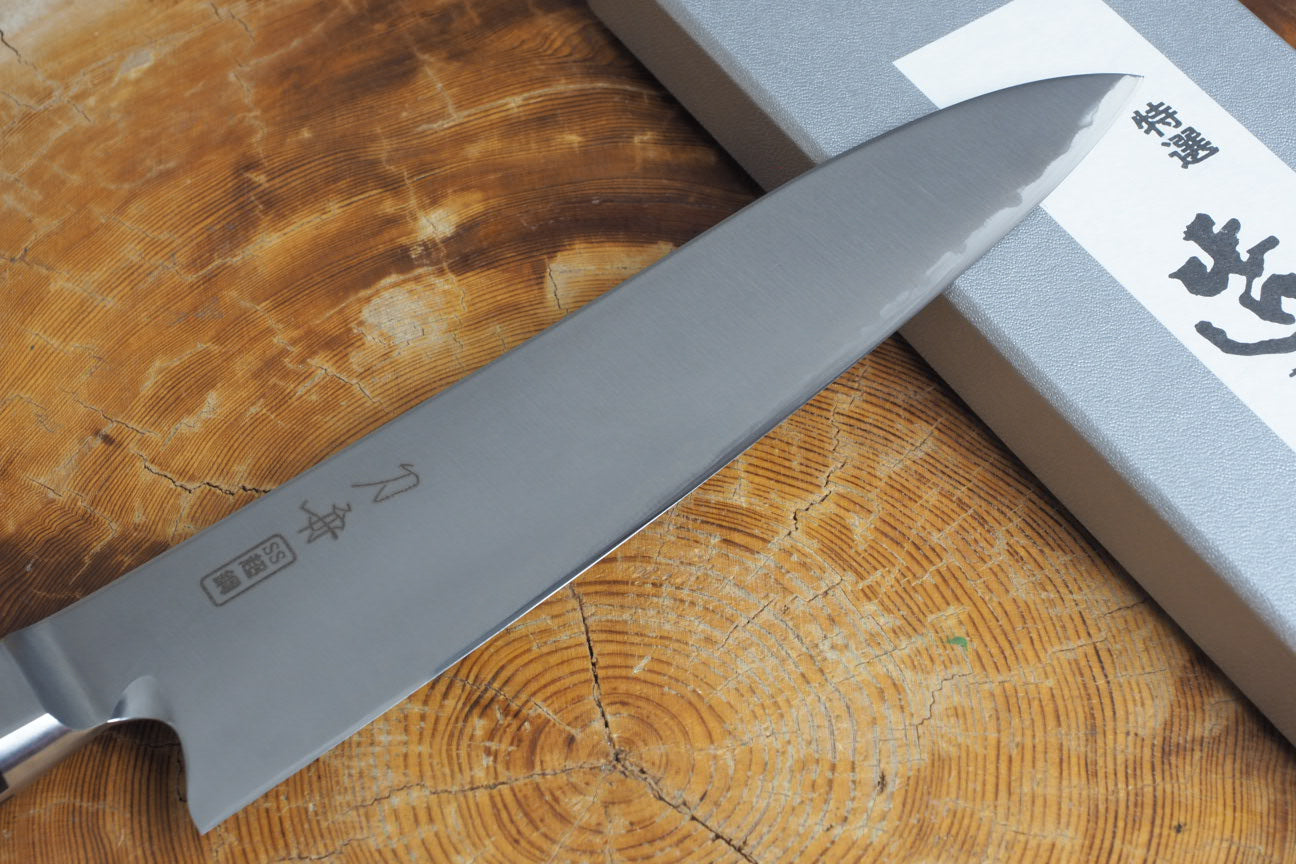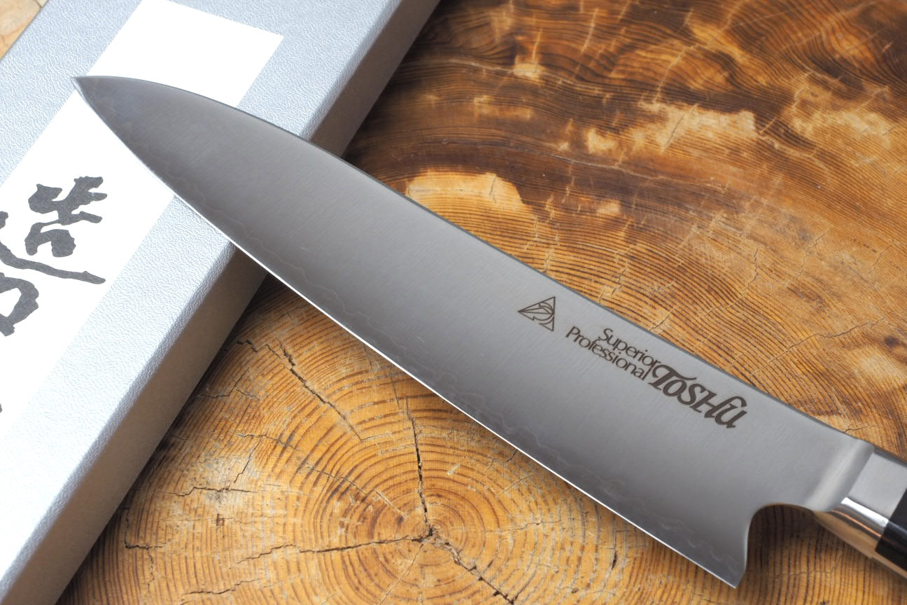 Originated in 1946, Toshu Kitchen Knife Shop has served a number of professionals with their unique knife-making methods such as "hammered flame forging" and "Edo-Togi grinding". Although the brand is not widely known worldwide, the second generation master, Mr.Tozaki has inherited the rare technique of knife sharpening, which is highly sophisticated and elaborately applied on each piece of his work.
