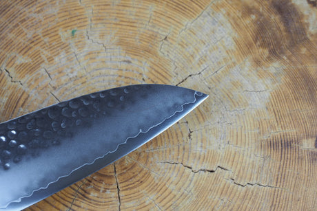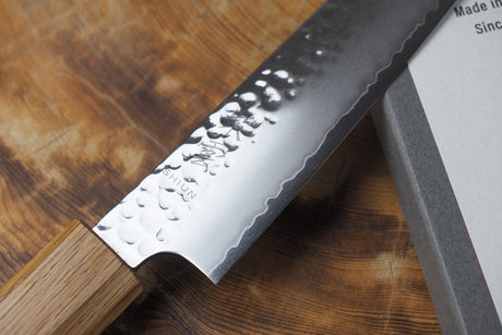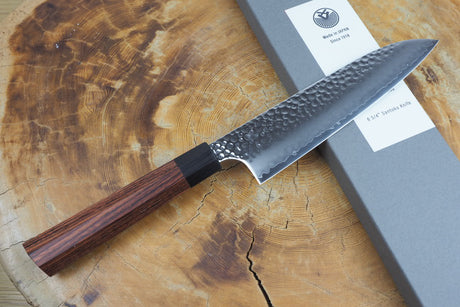 Seki Kanetsugu - Heptagon Wood Santoku Knife VG10 Steel hammered finish 17cm