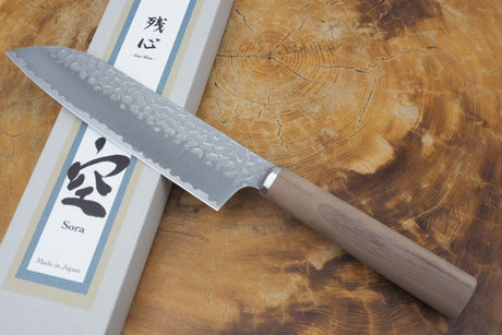 残心 Zan Shin SORA (from Seki) - VG10 Santoku Hammered Finish with Walnut Handle 16.5cm