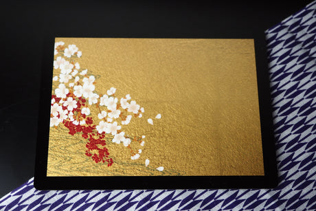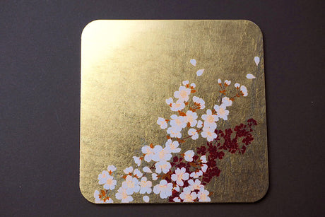 Gold Leaf Coaster - Cherry Blossom over waterflow (9.5cm x 9.5cm)