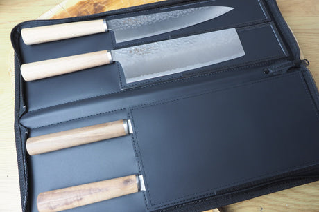 Jikko Knife case with leather handle - for 4 knives (no sheath needed)