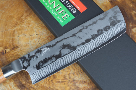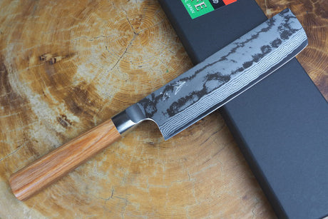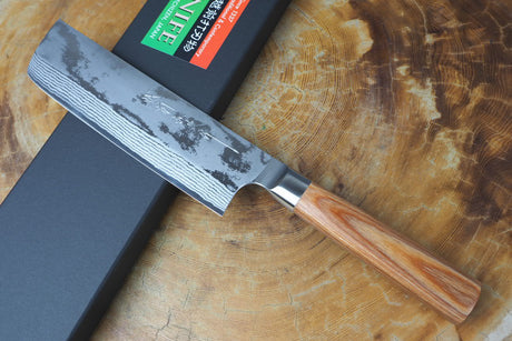 Seki Kanetsugu - Shiun Nakiri Knife 17.5cm VG10 Steel with Burnt Lacquer Oak Handle