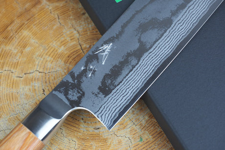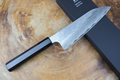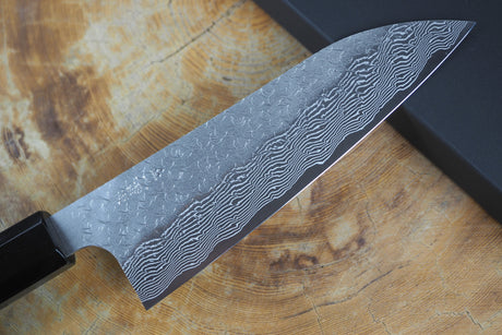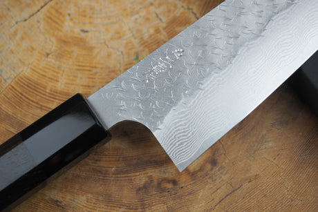 Nigara Hamono - SPG Strix Damascus Santoku with Ebony Handle 16.5cm