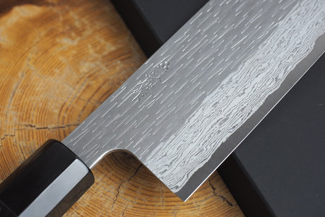 Nigara Hamono - SPG Strix Damascus Kiritsuke (K-tip) Nakiri with Ebony Handle 18cm