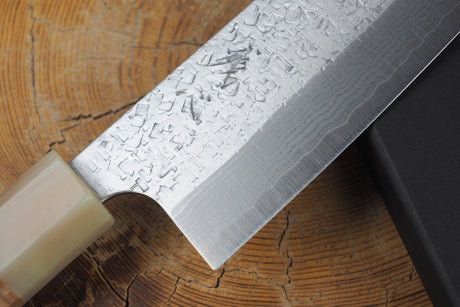 Seki Kanetsugu - Heptagon Wood Nakiri VG10 Steel hammered finish 17.5cm