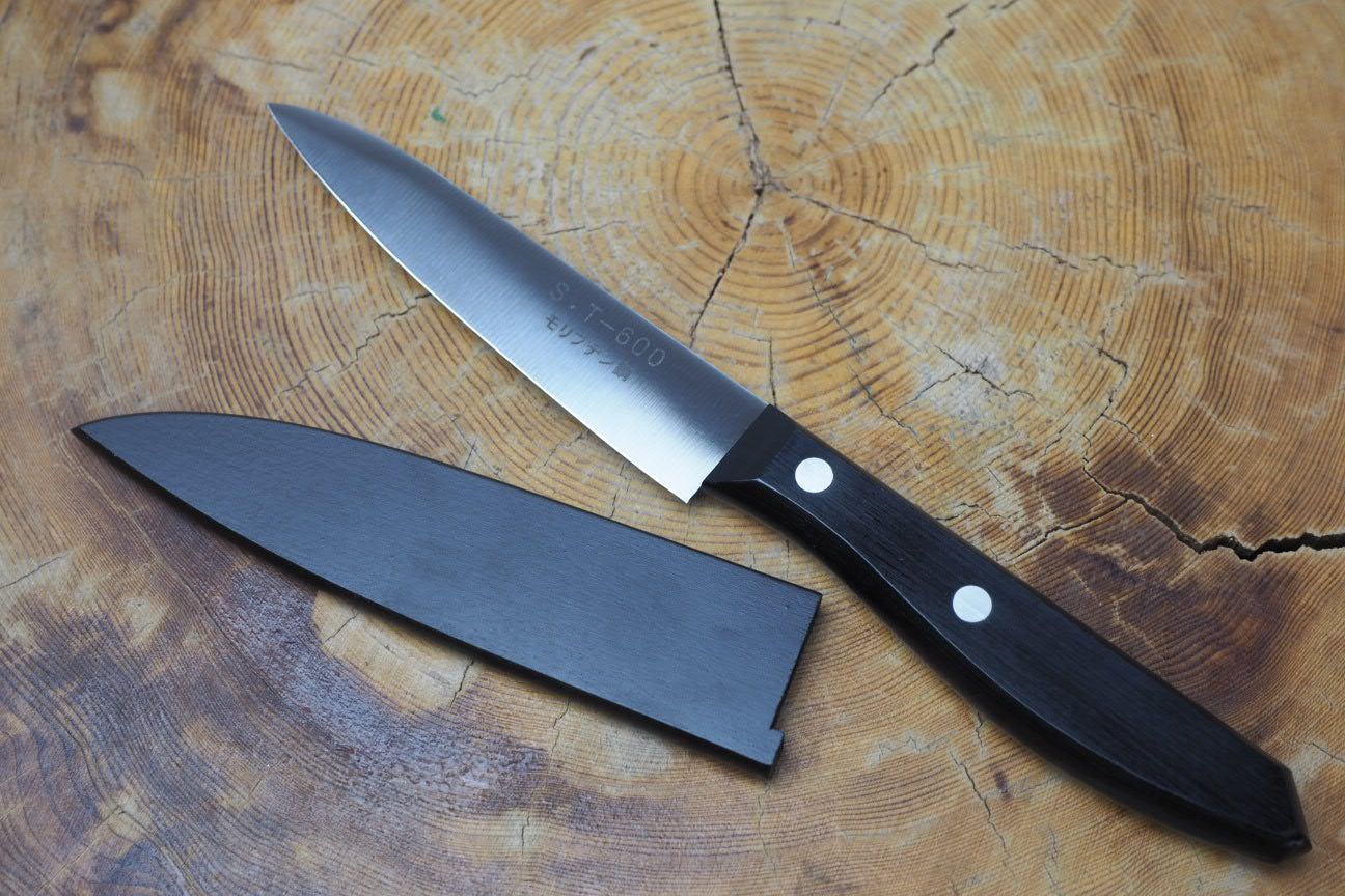 Stainless Fruit Knife ST-600 with Black Wooden Sheath 10.4cm