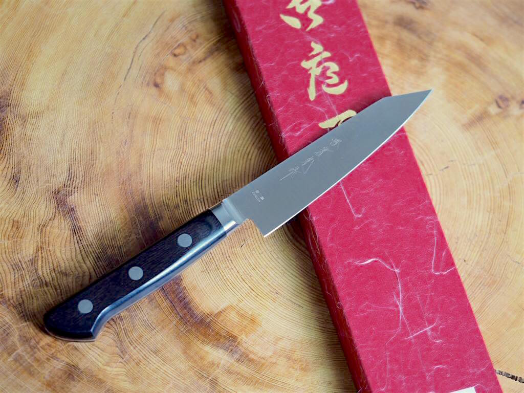 Petty knife “Ginsan” series utilises Rust resistant Silver-3 Steel. (Ginsan is translated as Gin=Silver, San=Three) This model’s sharpness is comparable to carbon steel knives and is strong to rust. It’s suited for those who prefer knives with great sharpness as well as effortless maintenance.