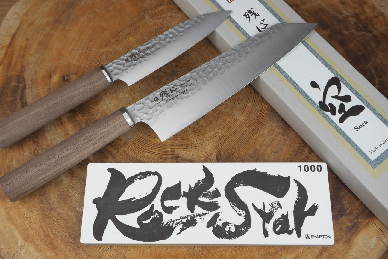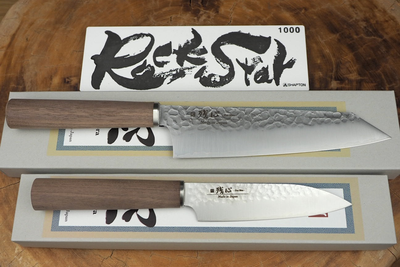 Zan Shin SORA 2 knife set - VG10 Bunka (18cm) and Petty (12cm) & Rockstar #1000 bundle