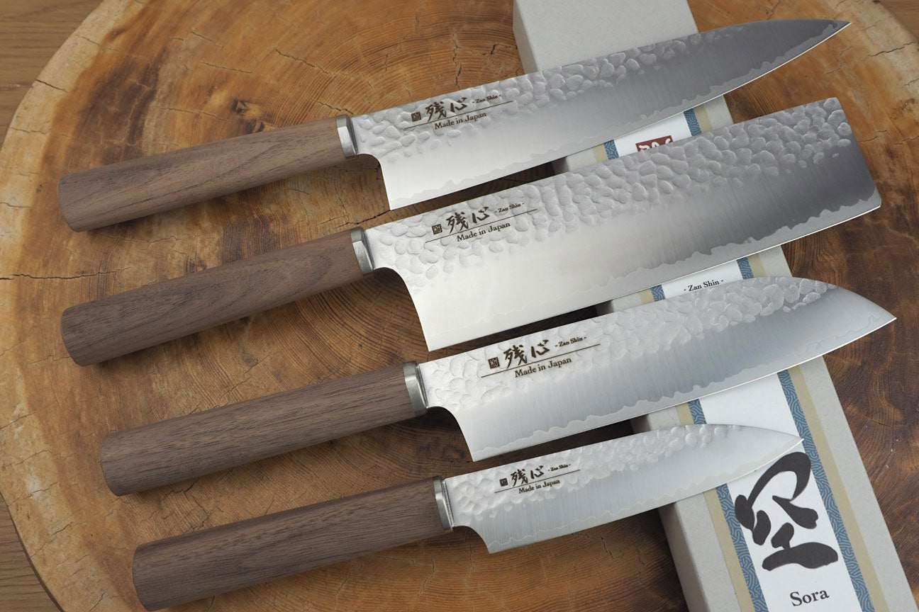 Zan Shin SORA 4 knife set - VG10 Gyuto (20cm), Nakiri (18cm), Santoku (16.5cm) and Petty (12cm)