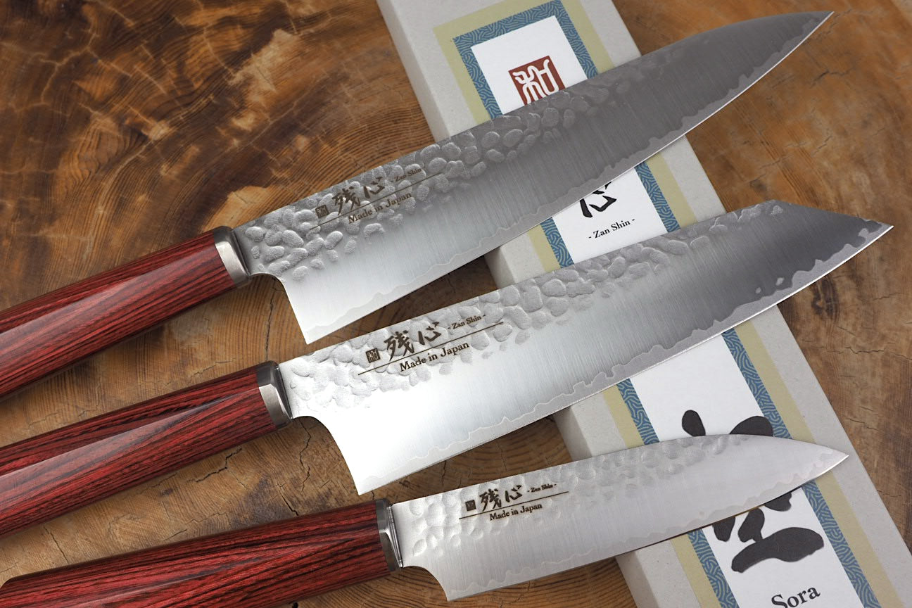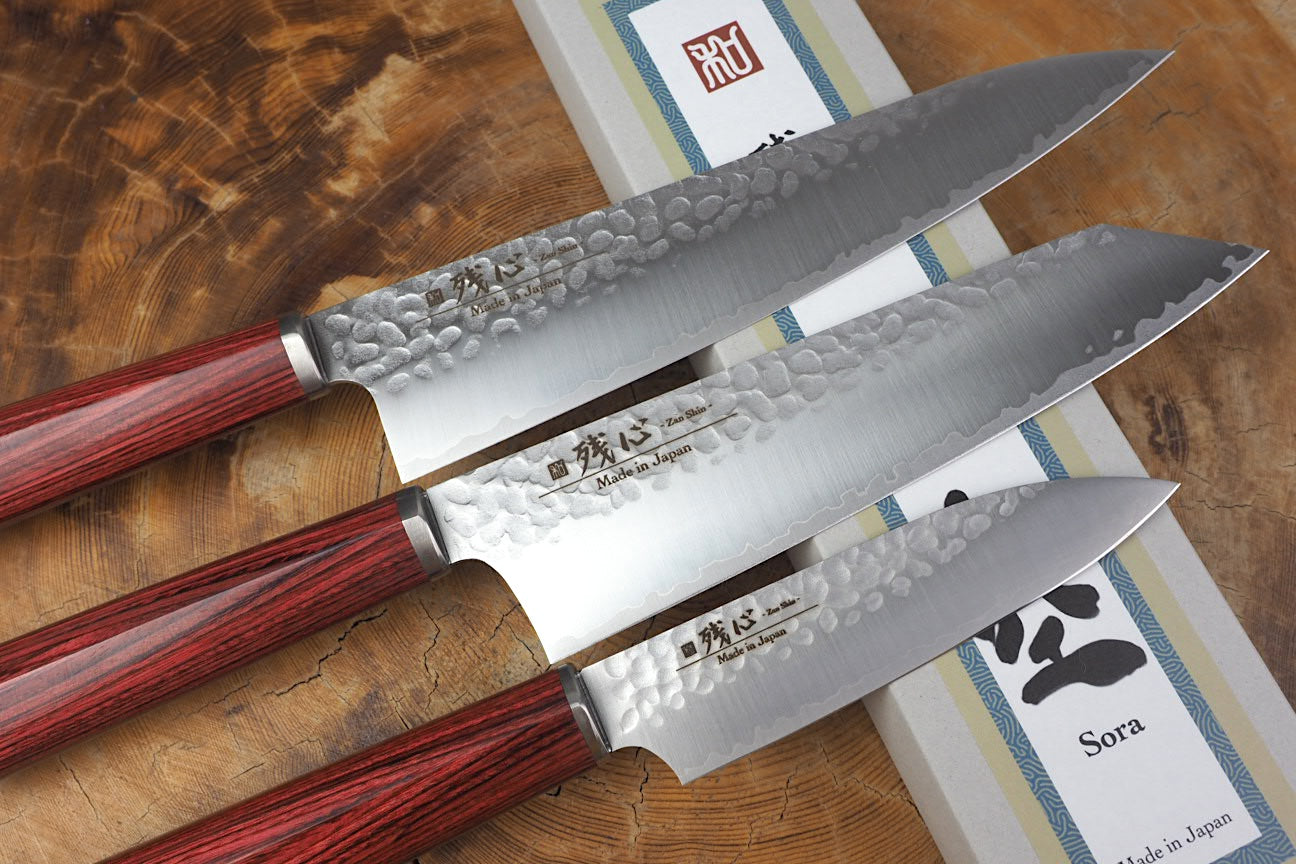Zan Shin SORA Red 3 knife set - VG10 Gyuto (20cm), Bunka (18cm) and Petty (12cm)