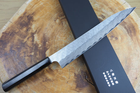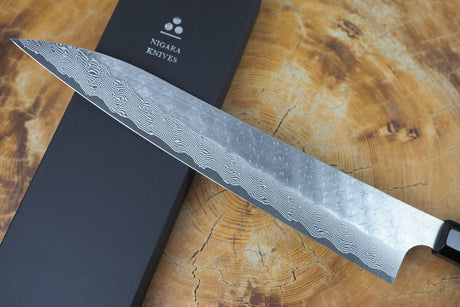 Nigara Hamono - SPG Strix Damascus Sujihiki (Carving/Slicer) with Ebony Handle 27cm
