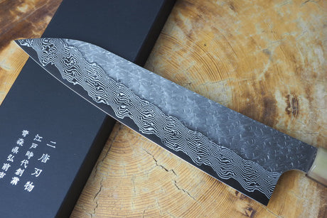 Nigara Hamono - SPG Strix Damascus Santoku with Ebony Handle 16.5cm