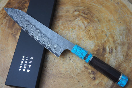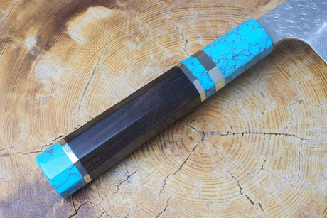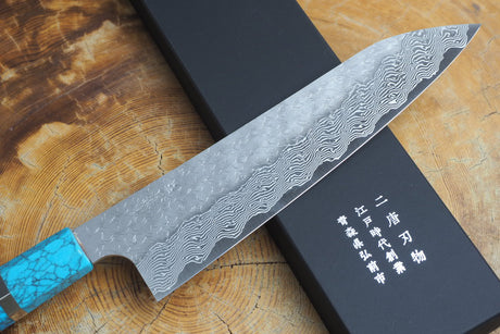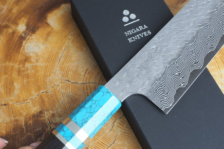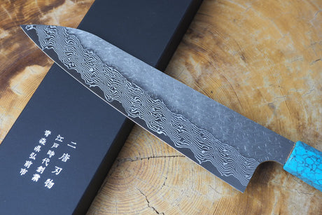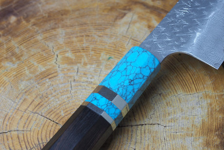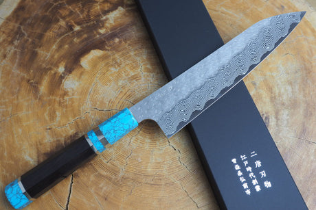 Nigara Hamono - SPG Strix Damascus Gyuto (Chef's Knife) 21cm with Turquoise-colour handle