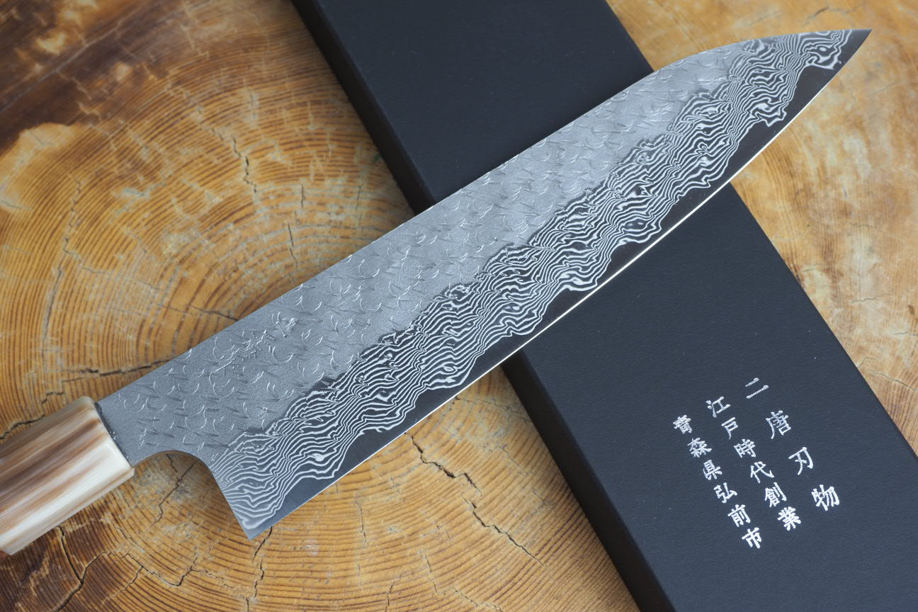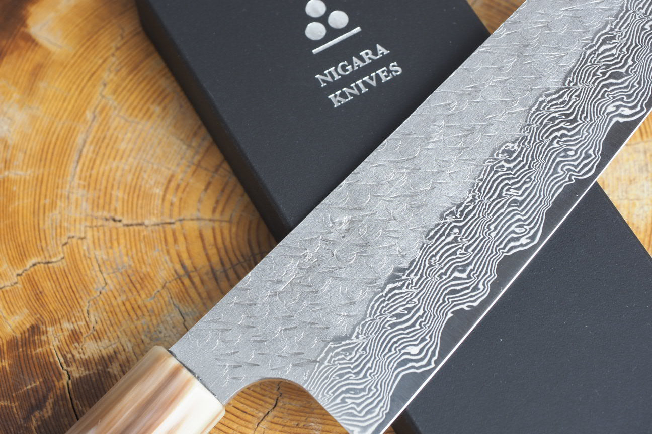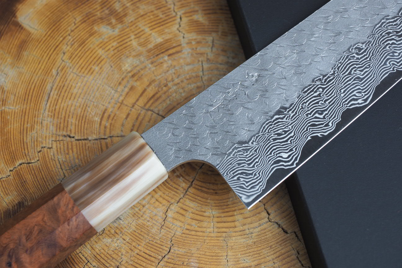 Nigara Hamono - SPG Strix Damascus Gyuto (Chef's Knife) with Bubinga Double Marble Buffalo Horn Handle 21cm