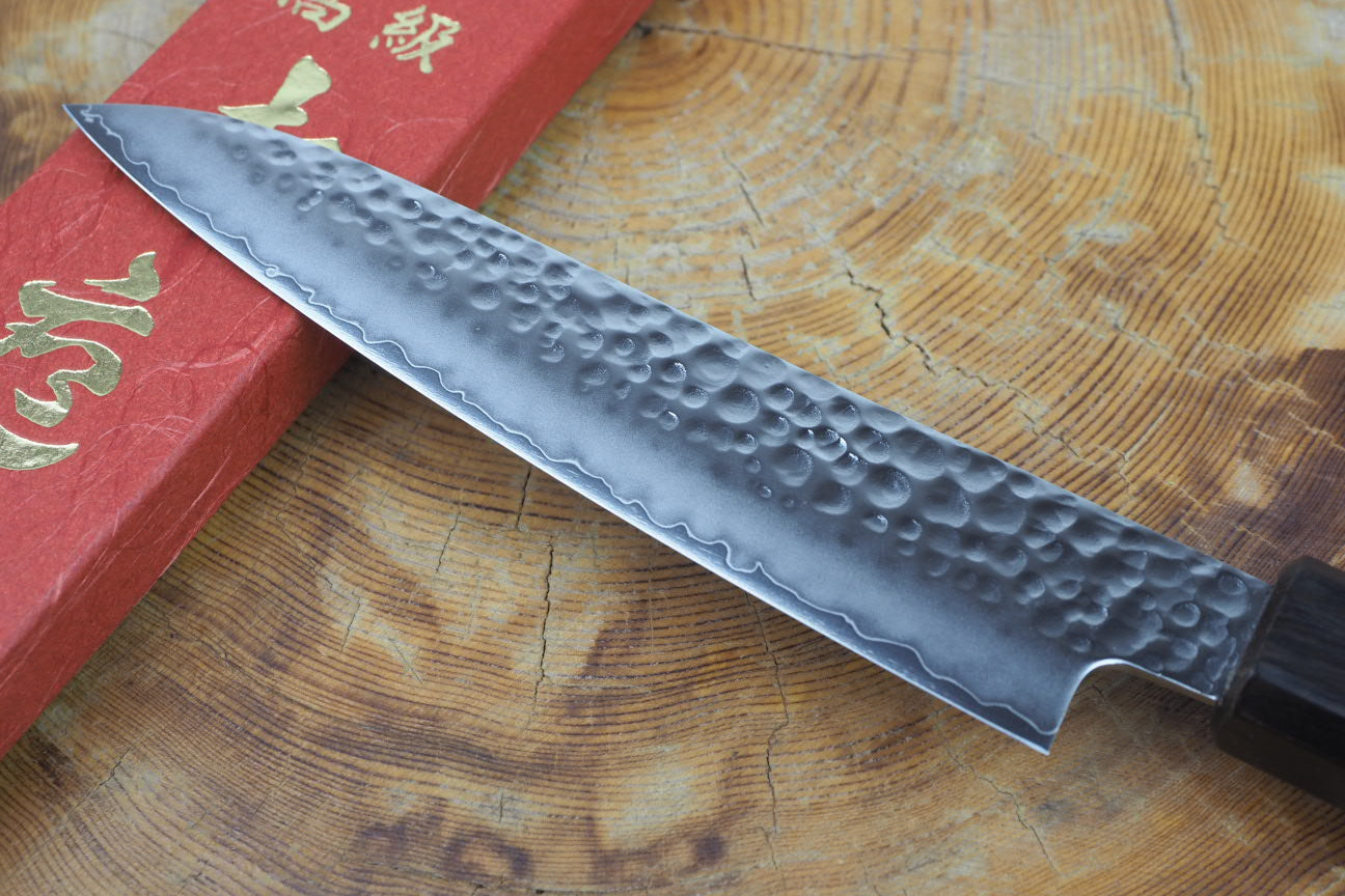 Sakai Jikko "Loco Black" Wa-Petty Knife VG10 Core Hammered Finish Black Japanese Oak Handle (13.5cm)