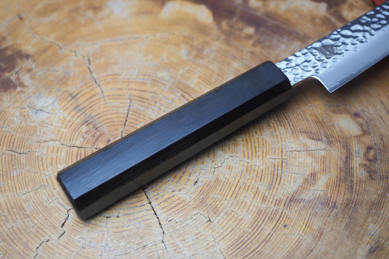 As a knife handle, it is quite lightweight compared to western oak wood, having comparative durability. The black lacquer is applied on top to give elegant feeling.