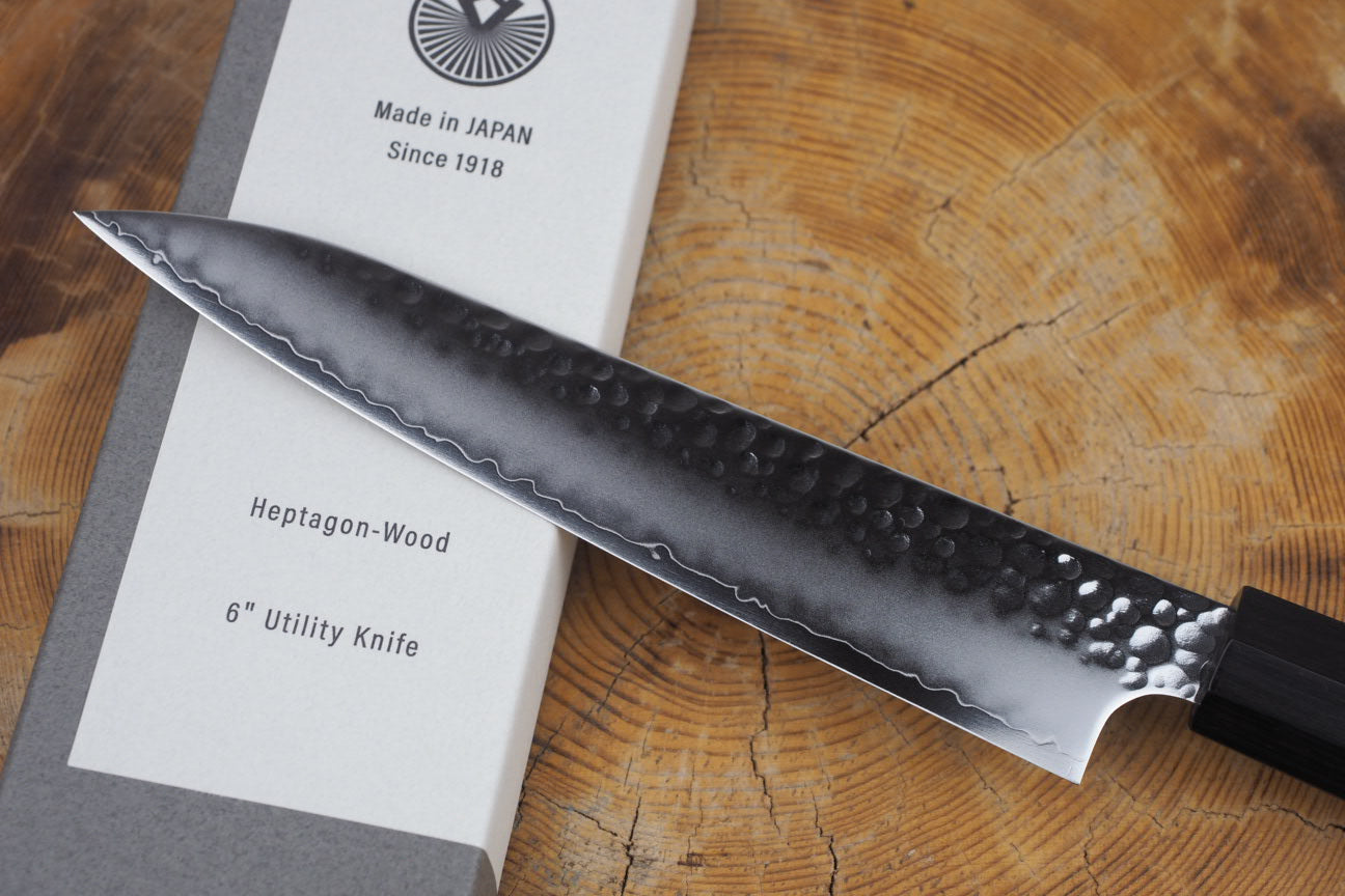 Seki Kanetsugu - Heptagon Wood Petty Knife VG10 Steel hammered finish 15cm