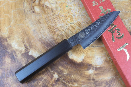Sakai Jikko "Loco Black" Wa-Paring Knife VG10 Core Hammered Finish Black Japanese Oak Handle (9cm)