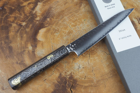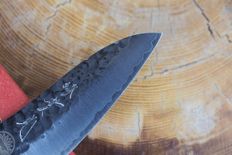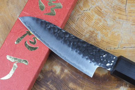 Sakai Jikko "Loco Black" Wa-Petty Knife VG10 Core Hammered Finish Black Japanese Oak Handle (13.5cm)