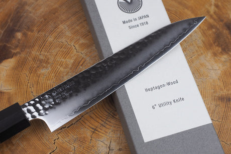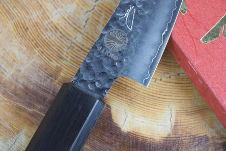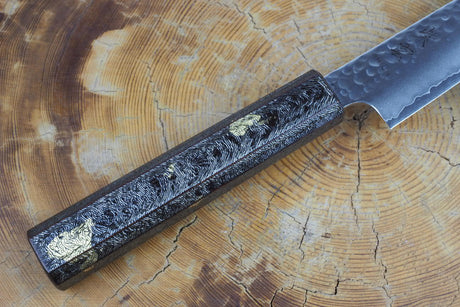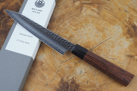 Seki Kanetsugu - Heptagon Wood Petty Knife VG10 Steel hammered finish 15cm