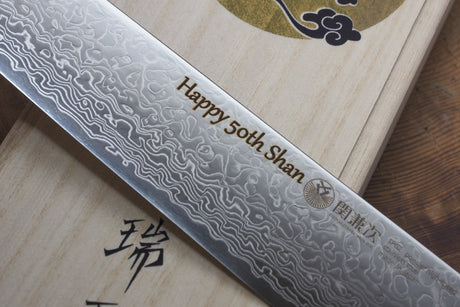 Seki Kanetsugu - Shiun Petty Knife 15cm VG10 Steel with Gold Leaf on Silver Lacquer Oak Handle