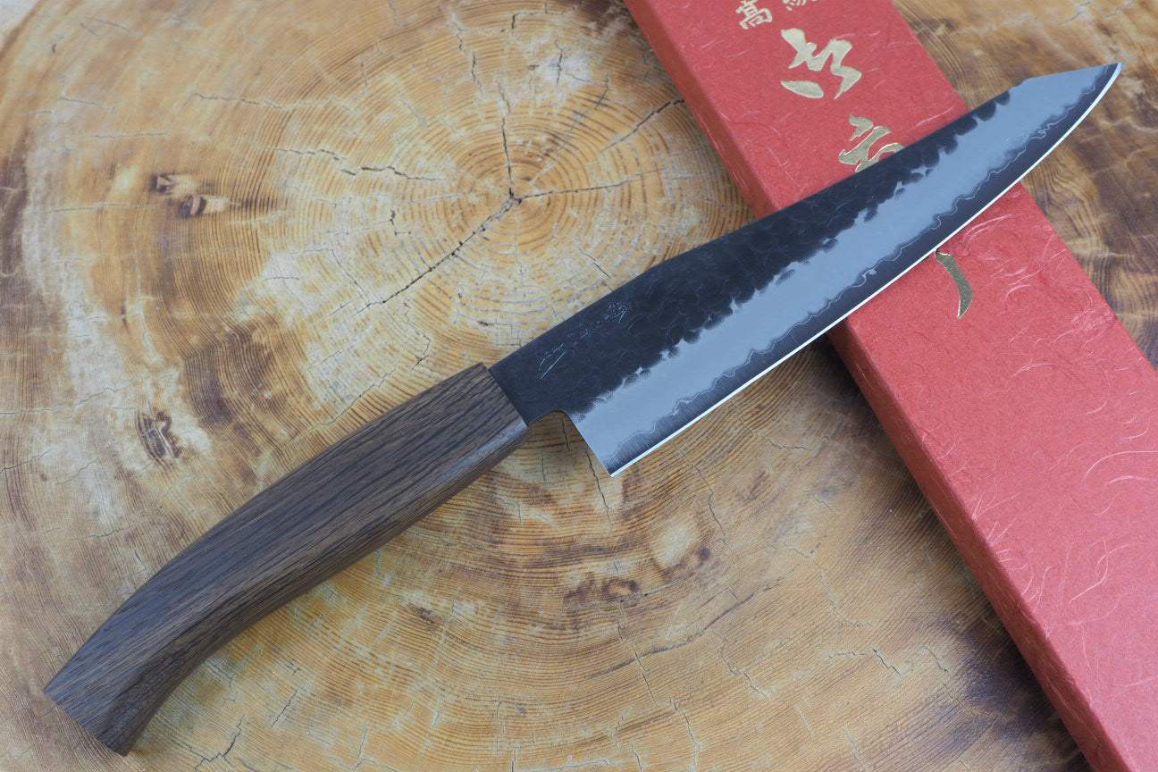 Kurouchi(黒打)is a type of knives that are only polished the edge line and left with black residue appearing after forging and quenching. The black part of every Kurouchi looks different to each other and shows a little imperfection in their looks. However, this rustic design is aesthetically pleasing to eyes and feels traditional craftsmanship.