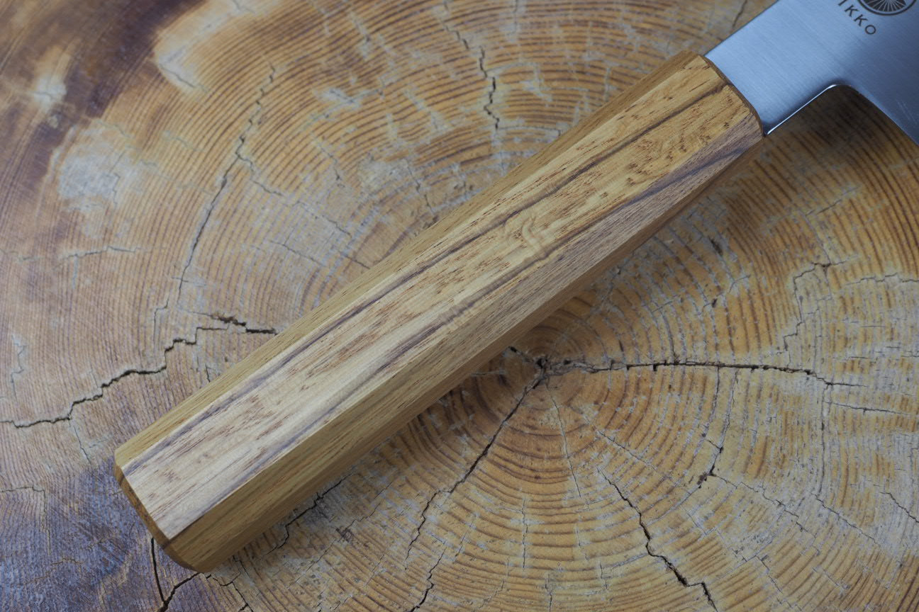 As a knife handle, it is quite lightweight compared to western oak wood, having comparative durability. The appearance of each differs in the brindle pattern.