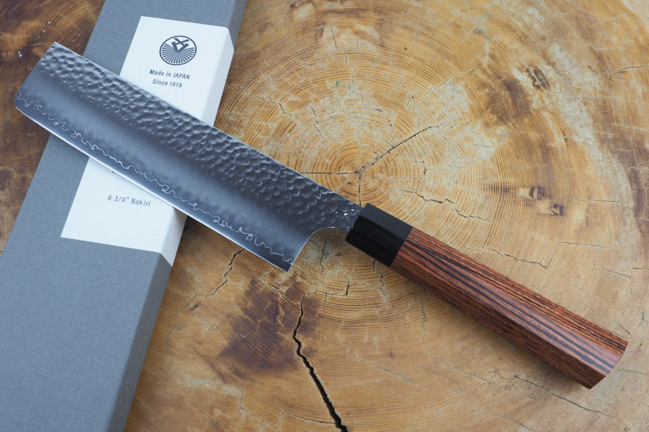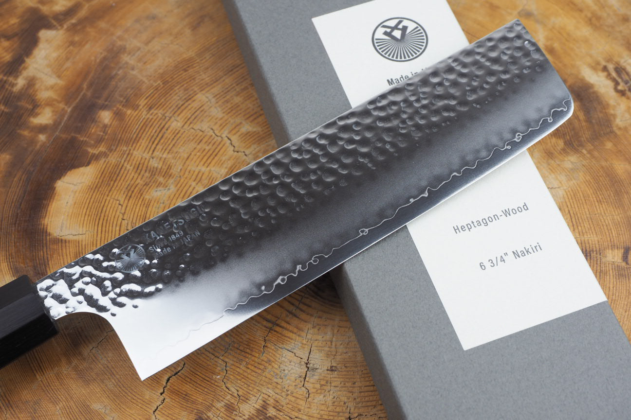Seki Kanetsugu - Heptagon Wood Nakiri VG10 Steel hammered finish 17.5cm