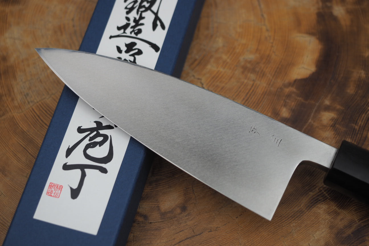 残心 Zan Shin (by Shigeki Tanaka) - Hand Forged Ginsan-Silver3 Steel Deba Knife with Walnut Handle (15cm)