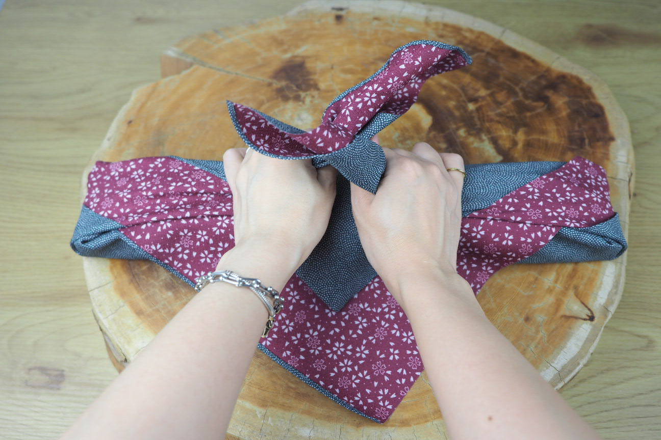 Furoshiki is versatilely used in many different ways. Their number of uses stretches as far as your imagination, you can wrap a gift, use it as a shopping bag, or decorate your room. It is very useful to carry items and if you present your gift with Furoshiki, it will be helpful for you to express your feeling to the person who receives it.