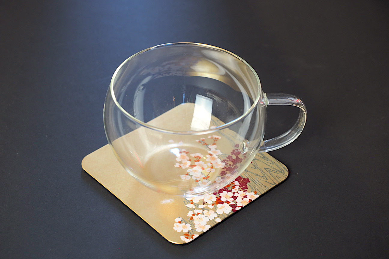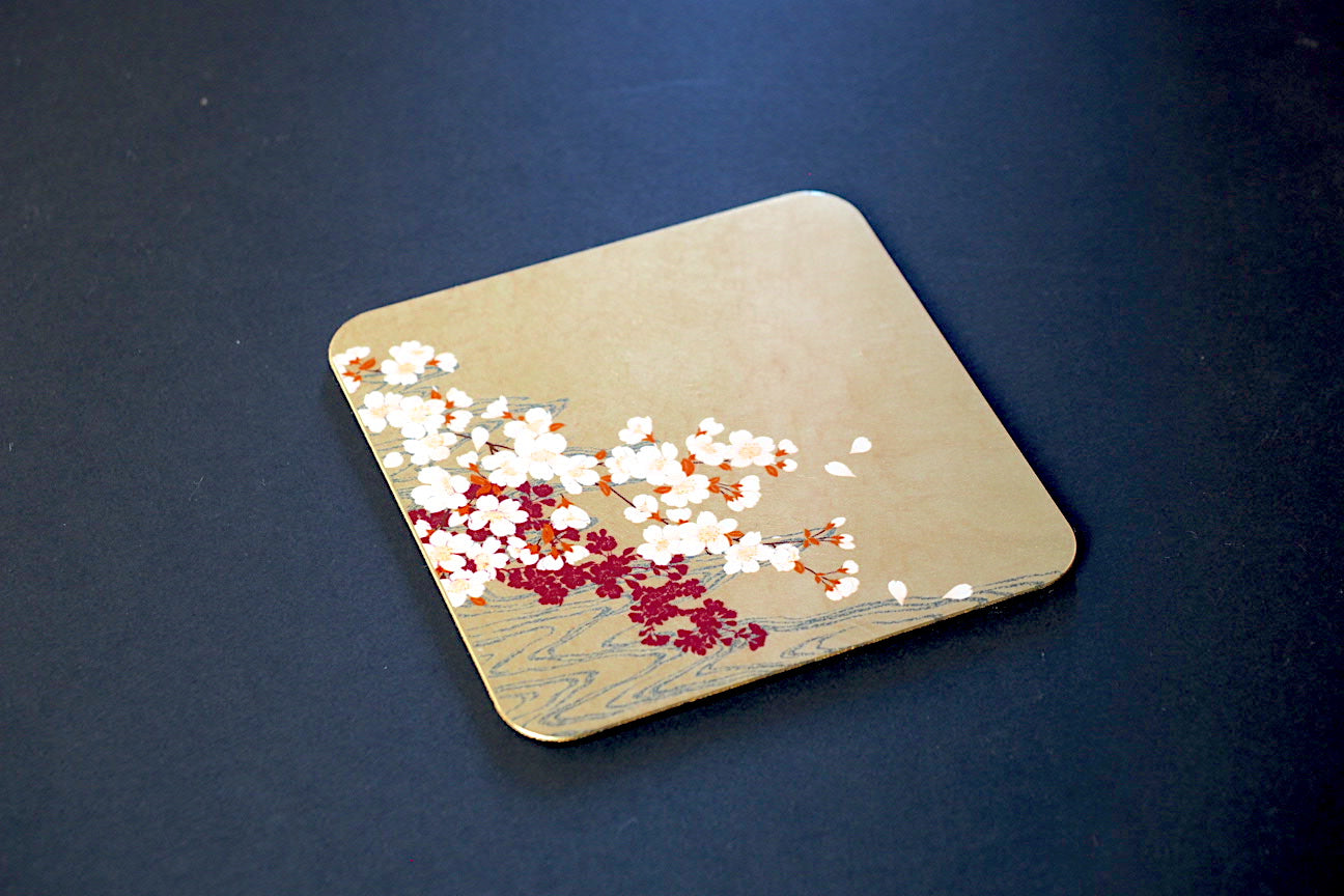 Gold Leaf Coaster - Cherry Blossom over waterflow (9.5cm x 9.5cm)