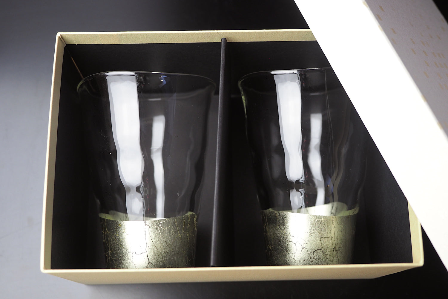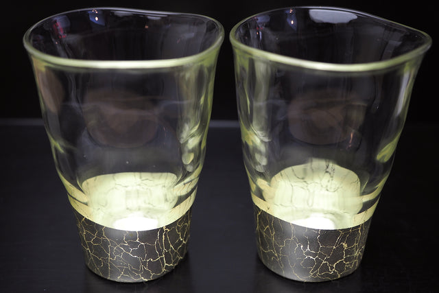"Kannyu" Warped Glass with Champagne Gold Crazing (250ml) - Set of 2