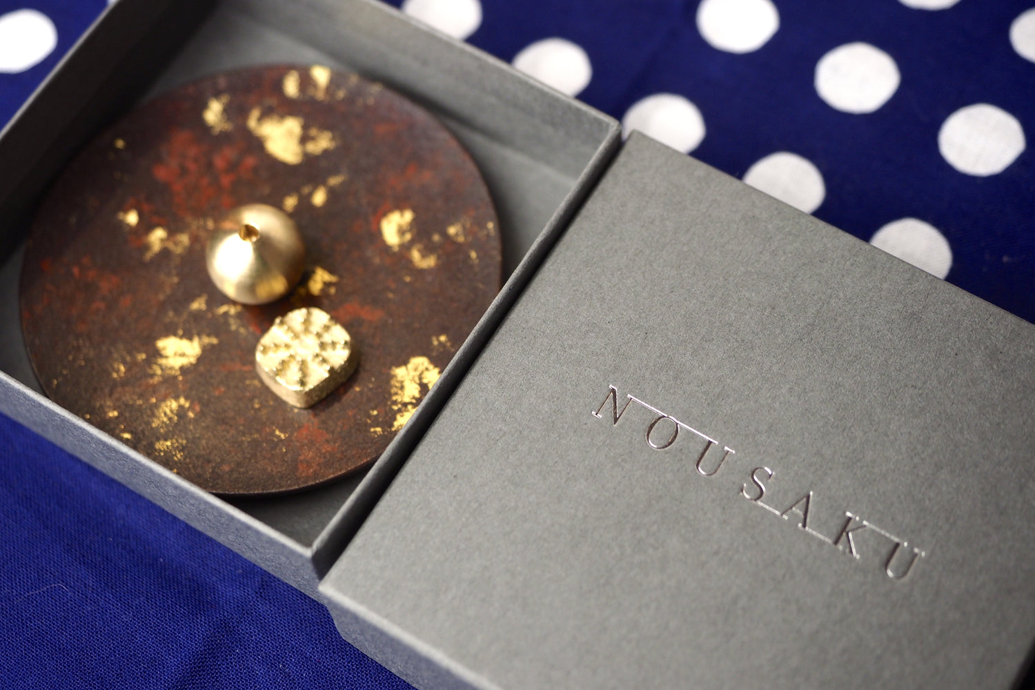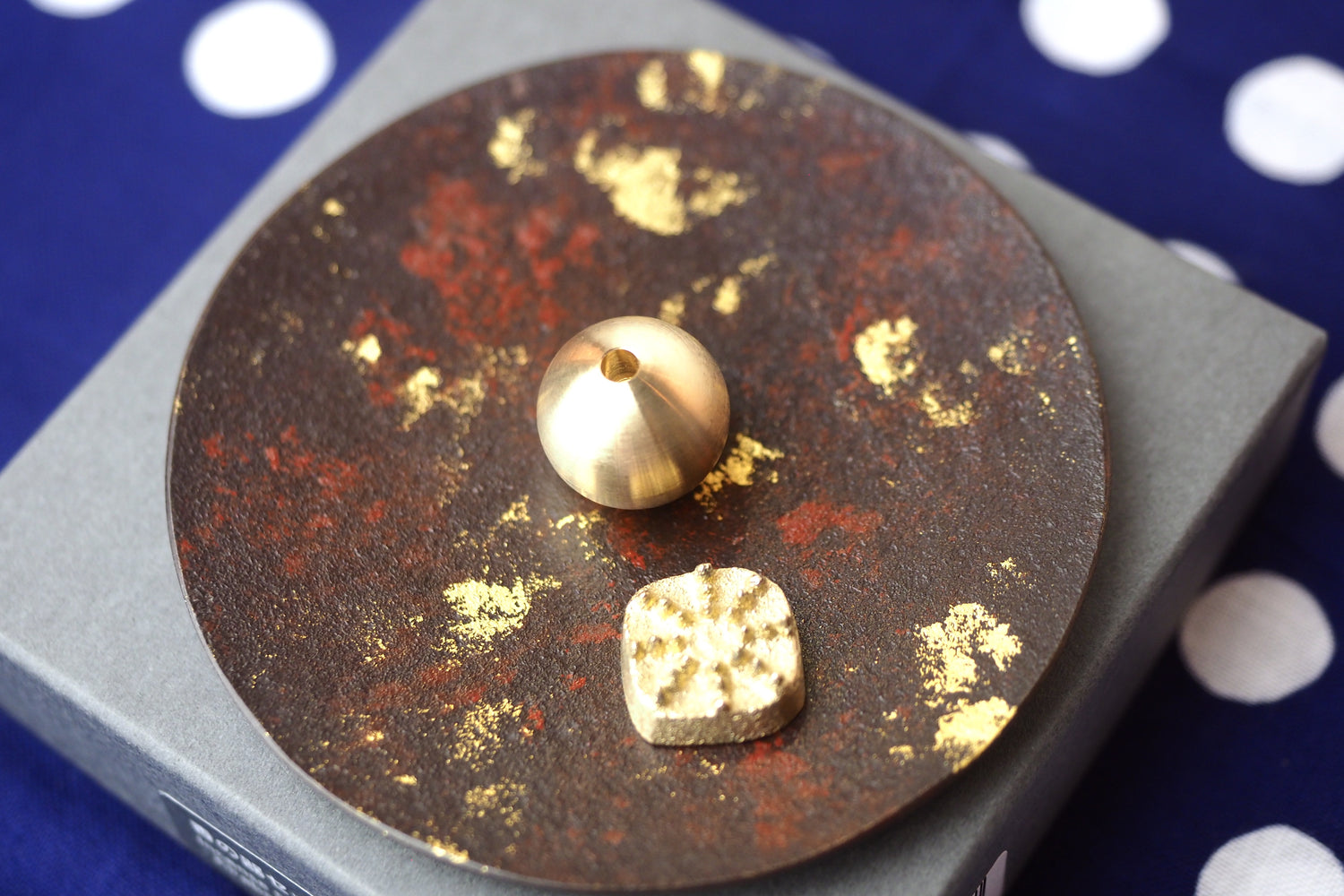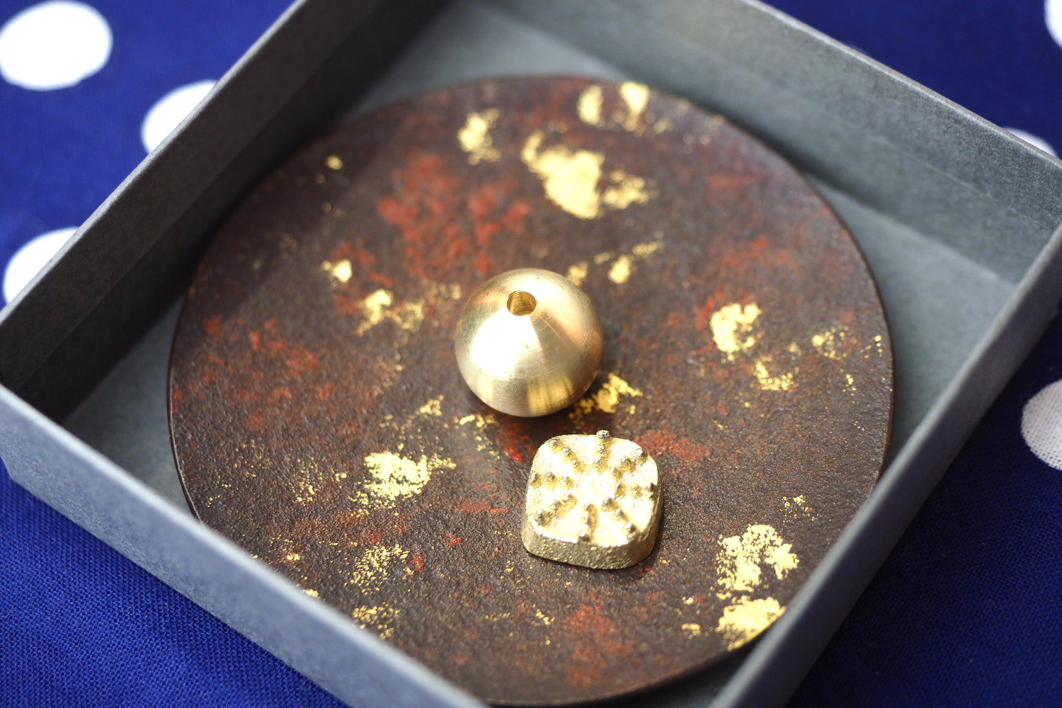 Nousaku - Brass Incense Holder Gold Leaf Pattern (Kiraboshi)