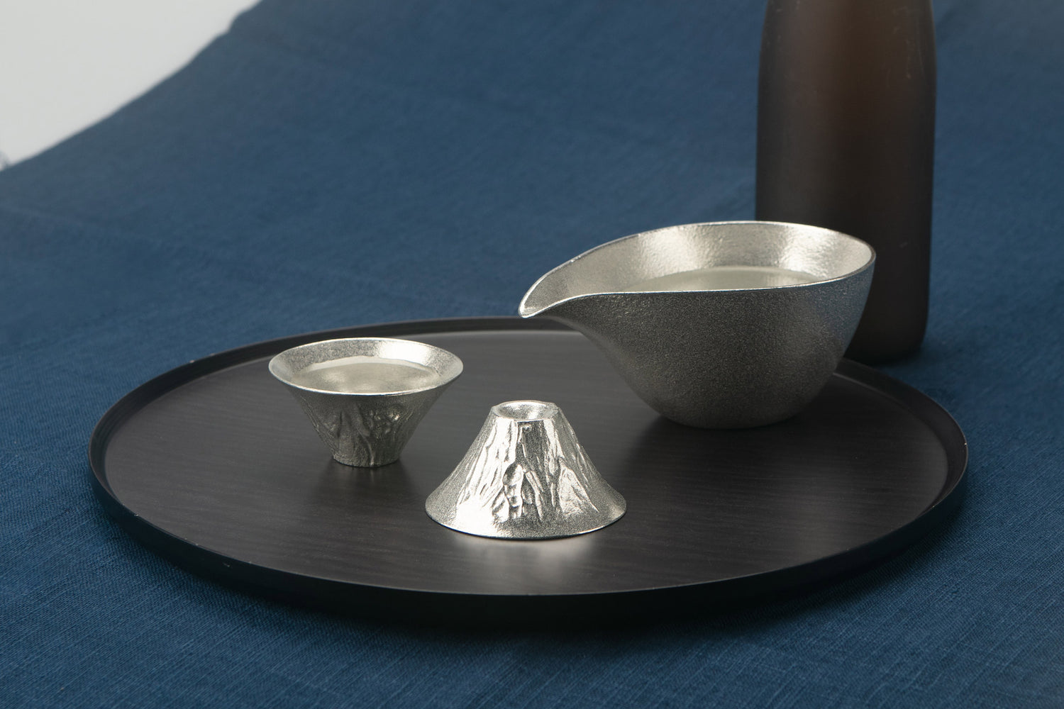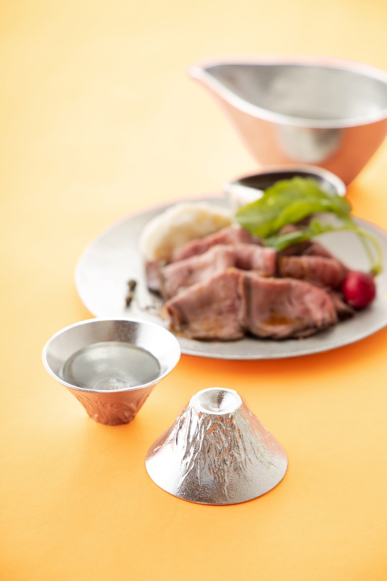 Nousaku utilises 100% pure tin in every piece of their tableware items. Tin is the most expensive metal after gold and silver, can be bendable and most suited for serving cold food and drinks. This is because tin chills so quickly in a refrigerator that it makes your drink, entree and dessert more enjoyable. Tin is also highly antibacterial and said to remove bitterness from sake as well as other beverages, resulting in milder taste.