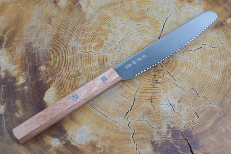 Kanetsune AUS-8 Serrated Blade Spread Knife 11cm Red Plywood Handle