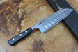 The meaning of Santoku is “Three virtue” or “Three usage” in general. This knife enables you to cut variety of food items such as meat, fish, vegetables, etc. It is suitable for your first knife or general-purpose home use.