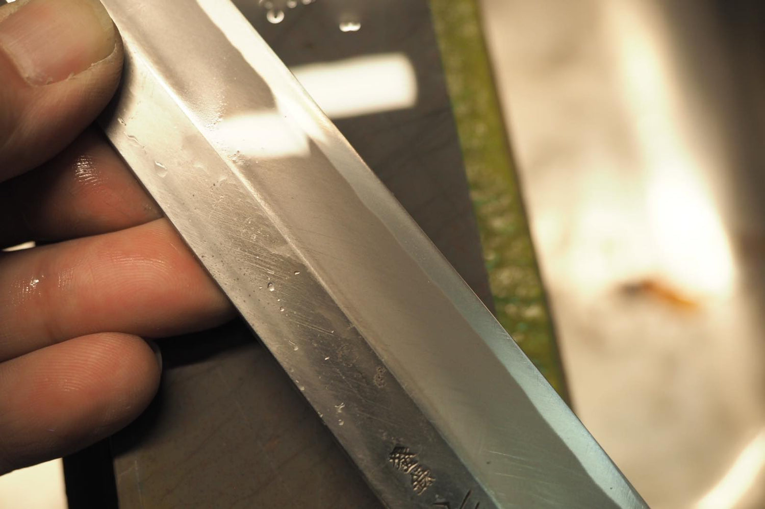 After that, we try sharpening and check if there are any streaks that cause a possible snag. We saw them off and have the line dented so that your strokes will not get caught. We re-try sharpening and get it ready for use by customers.