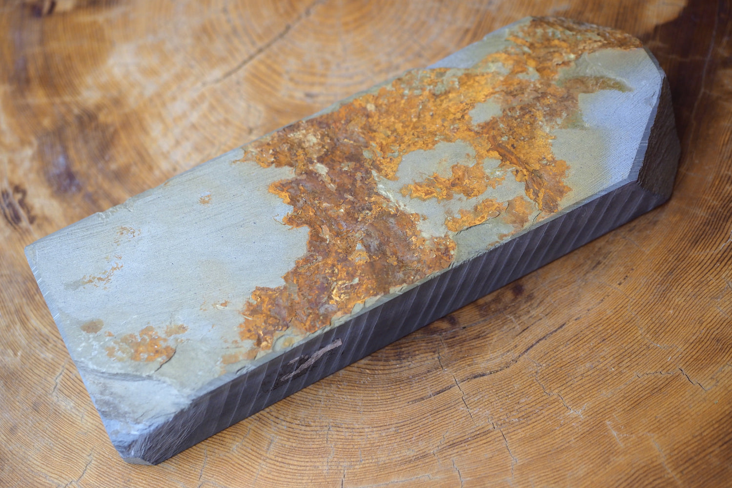 The natural whetstones suited for finishing purposes are mainly siliceous slate and siliceous shale. These are further narrowed down to the ones that meet several requirements such as hardness, evenness of abrasive and absorption of water. Geographically, it is proven that Kyoto and its surrounding have the ideal stratum for natural whetstones, where layers of clay and radiolarian have slowly accumulated on the ocean floor in the equatorial regions at a rate of 1mm per a thousand years since the ancient Permian period (about 250 million years ago). Then, it traveled to the current location in Japan through crustal movement on the ocean plates.