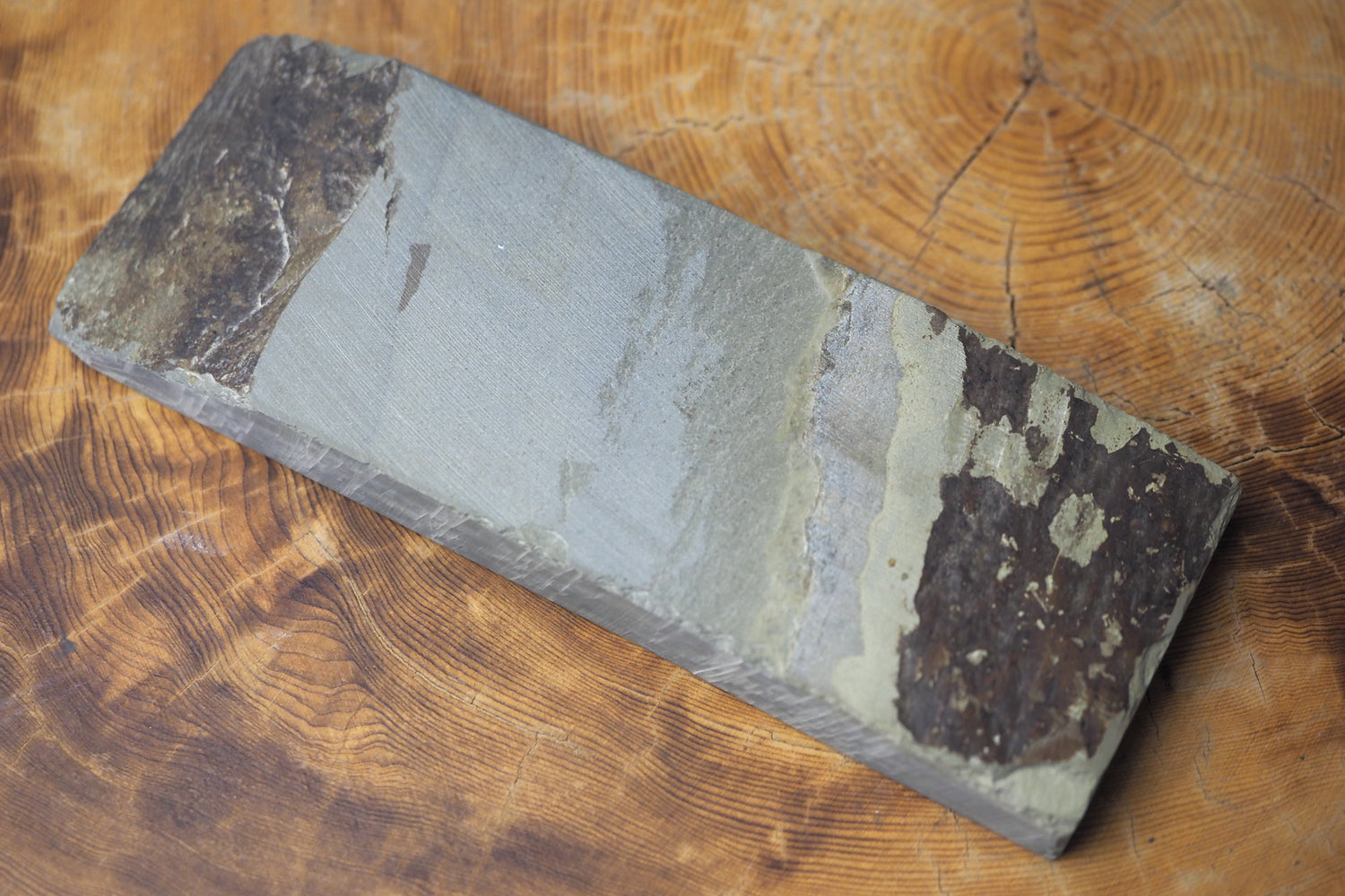 The natural whetstones suited for finishing purposes are mainly siliceous slate and siliceous shale. These are further narrowed down to the ones that meet several requirements such as hardness, evenness of abrasive and absorption of water. Geographically, it is proven that Kyoto and its surrounding have the ideal stratum for natural whetstones, where layers of clay and radiolarian have slowly accumulated on the ocean floor in the equatorial regions at a rate of 1mm per a thousand years since the ancient Permian period (about 250 million years ago). Then, it traveled to the current location in Japan through crustal movement on the ocean plates.
