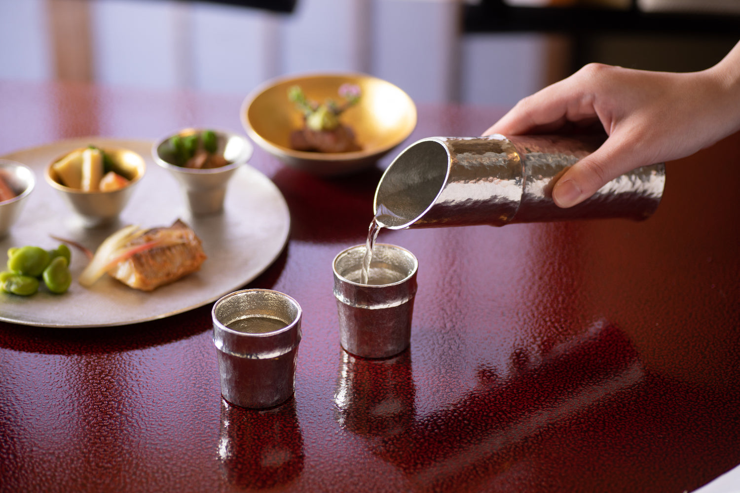 Nousaku utilises 100% pure tin in every piece of their tableware items. Tin is the most expensive metal after gold and silver, can be bendable and most suited for serving cold food and drinks. This is because tin chills so quickly in a refrigerator that it makes your drink, entree and dessert more enjoyable. Tin is also highly antibacterial and said to remove bitterness from sake as well as other beverages, resulting in milder taste.
