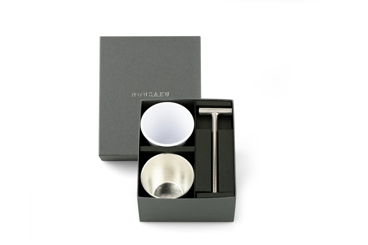Nousaku utilises 100% pure tin in every piece of their tableware items. Tin is the most expensive metal after gold and silver, can be bendable and most suited for serving cold food and drinks. This is because tin chills so quickly in a refrigerator that it makes your drink, entree and dessert more enjoyable. Tin is also highly antibacterial and said to remove bitterness from sake as well as other beverages, resulting in milder taste.