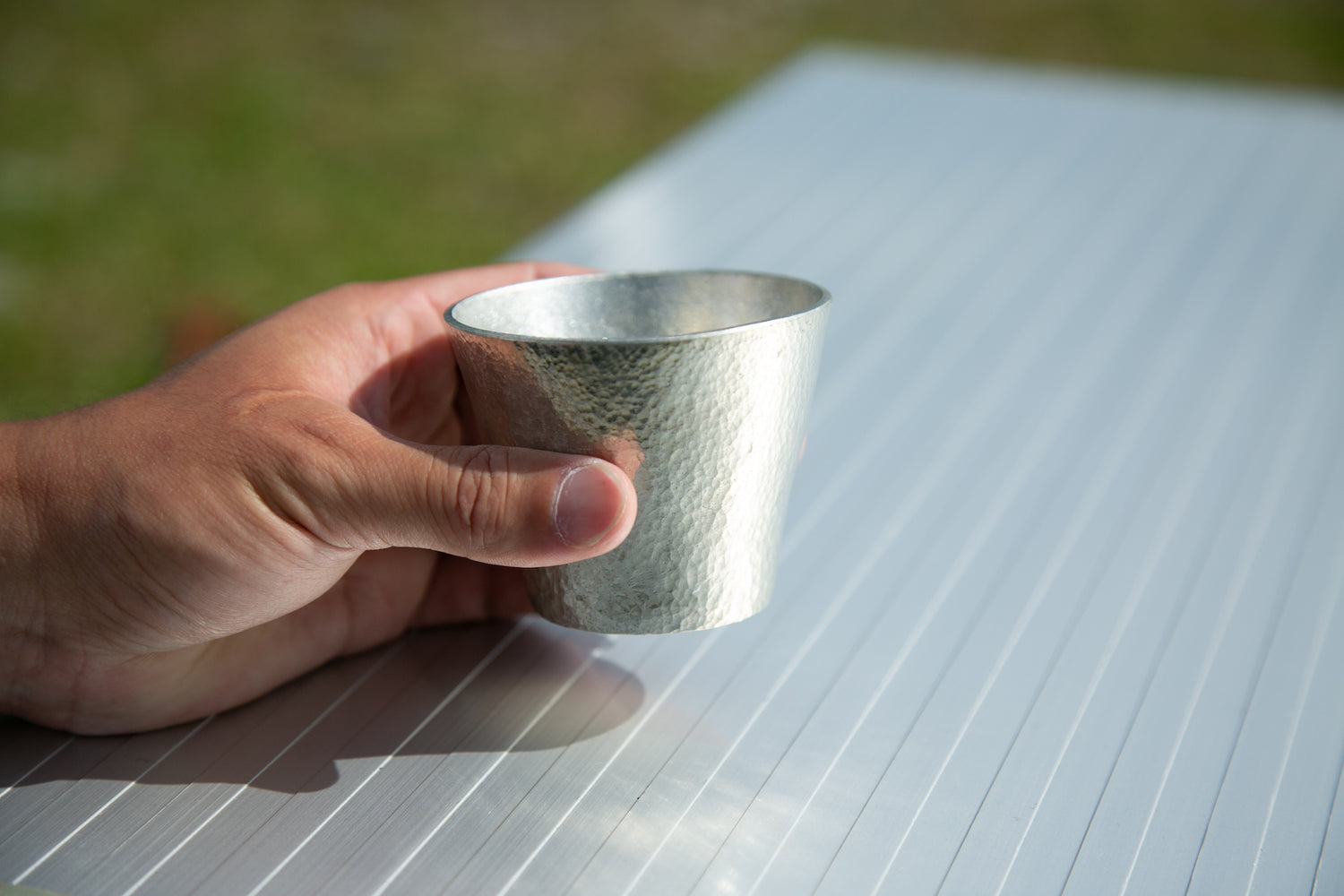 You can make only one tumbler in the world by hitting the metal with a hammer to create your own pattern.