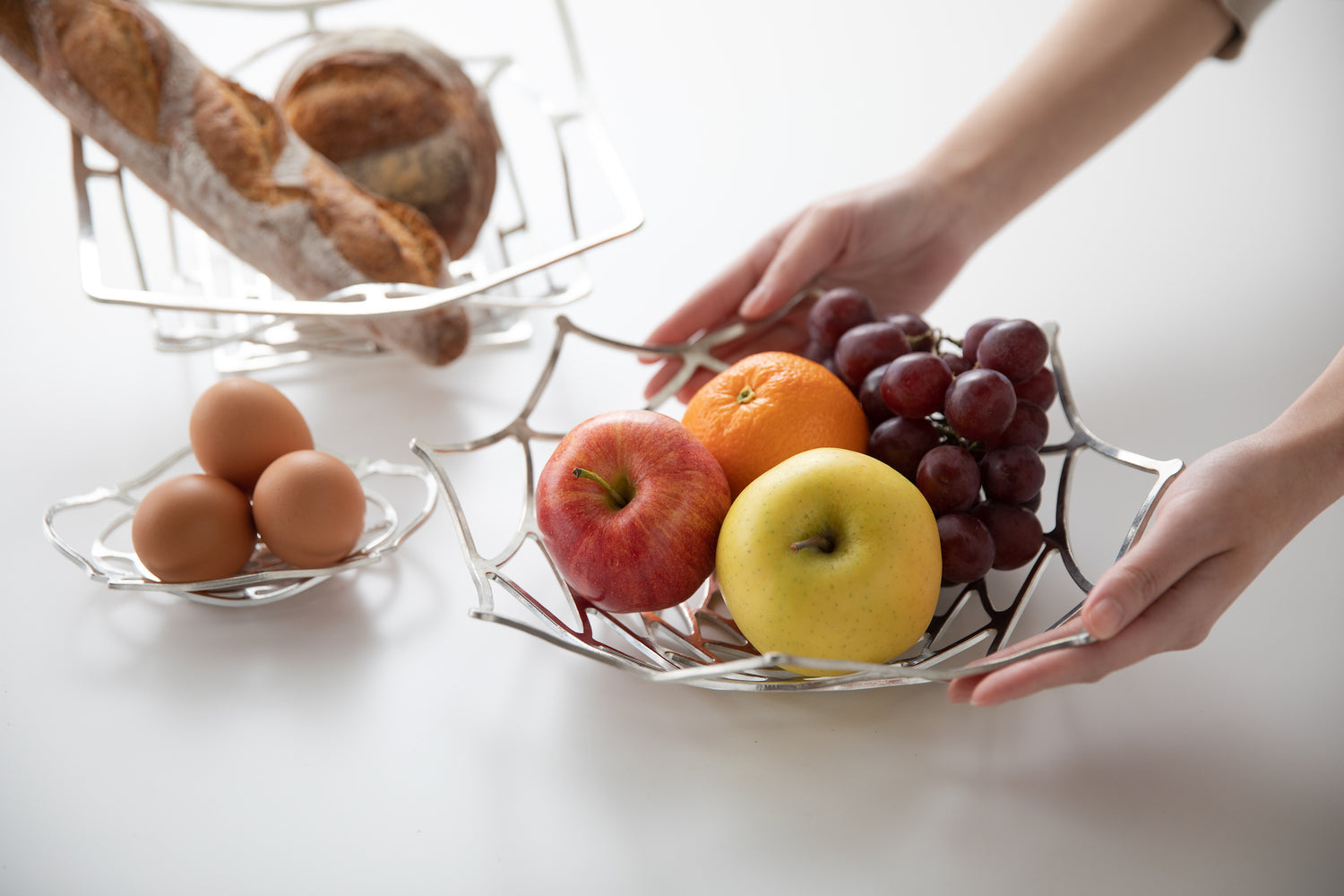 Nousaku - KAGO series make best use of the soft and bendable character of 100% tin. Unlike ordinary tin products alloyed with another metal compound, KAGO series are purely made of tin, producing this fascinating bendability. By bending KAGO vertically and horizontally, it can be formed to various basket shapes. Arrange it to your liking, and you can create an original basket for fruits, bread even a wine holder.