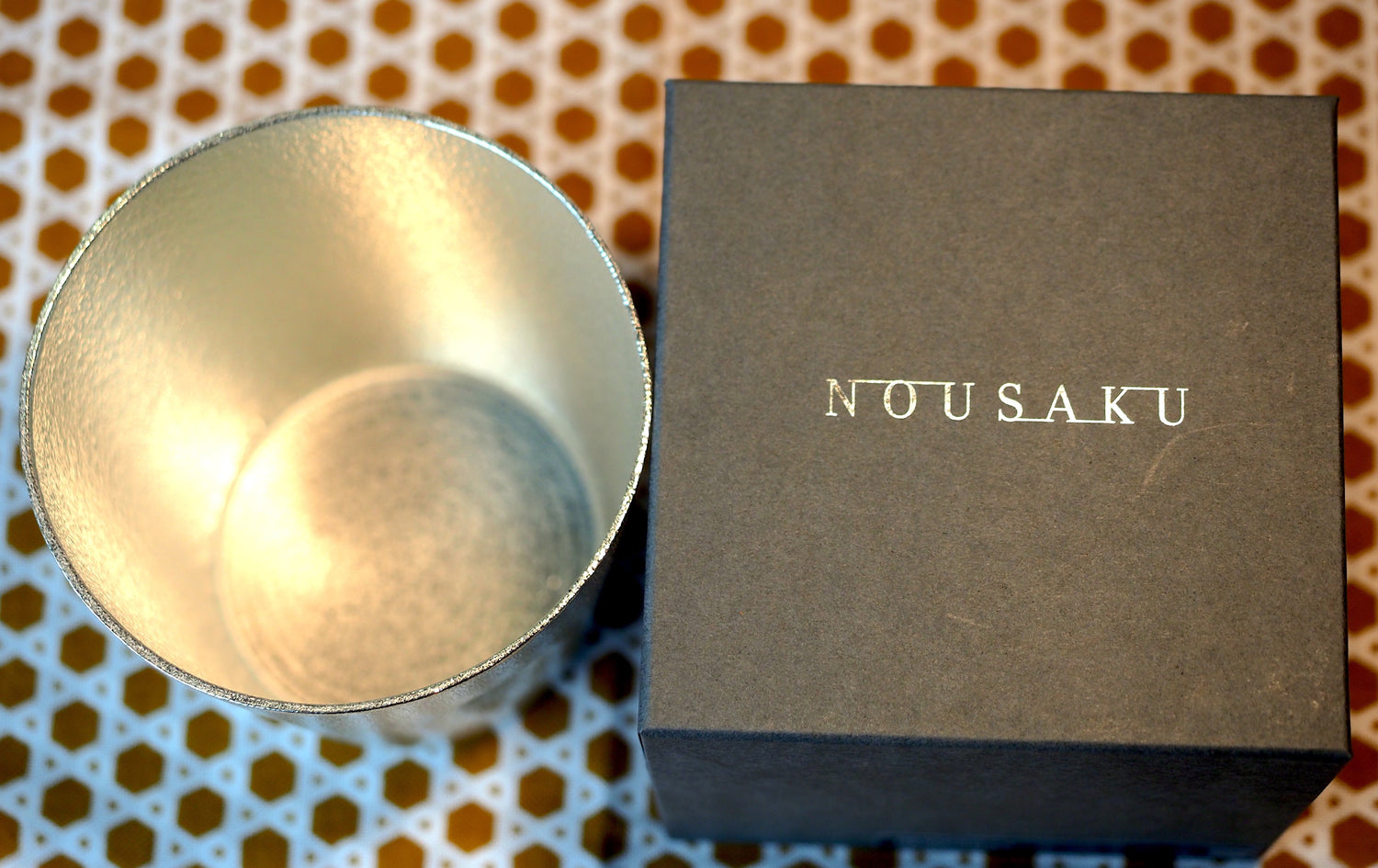 Nousaku utilises 100% pure tin in every piece of their tableware items. Tin is the most expensive metal after gold and silver, can be bendable and most suited for serving cold food and drinks. This is because tin chills so quickly in a refrigerator that it makes your drink, entree and dessert more enjoyable. Tin is also highly antibacterial and said to remove bitterness from sake as well as other beverages, resulting in milder taste.